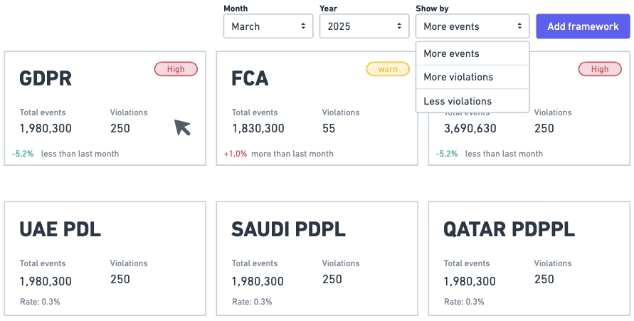 Generate audit reports in 3 seconds. GDPR, EU AI Act, FCA—all frameworks covered.